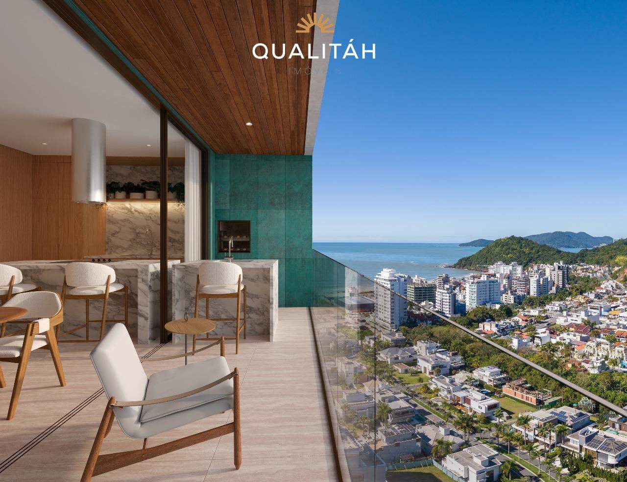 Todos apartamentos possuem sacada aberta e churrasqueira a carvão, para o verdadeiro lifestyle Praia Brava.
