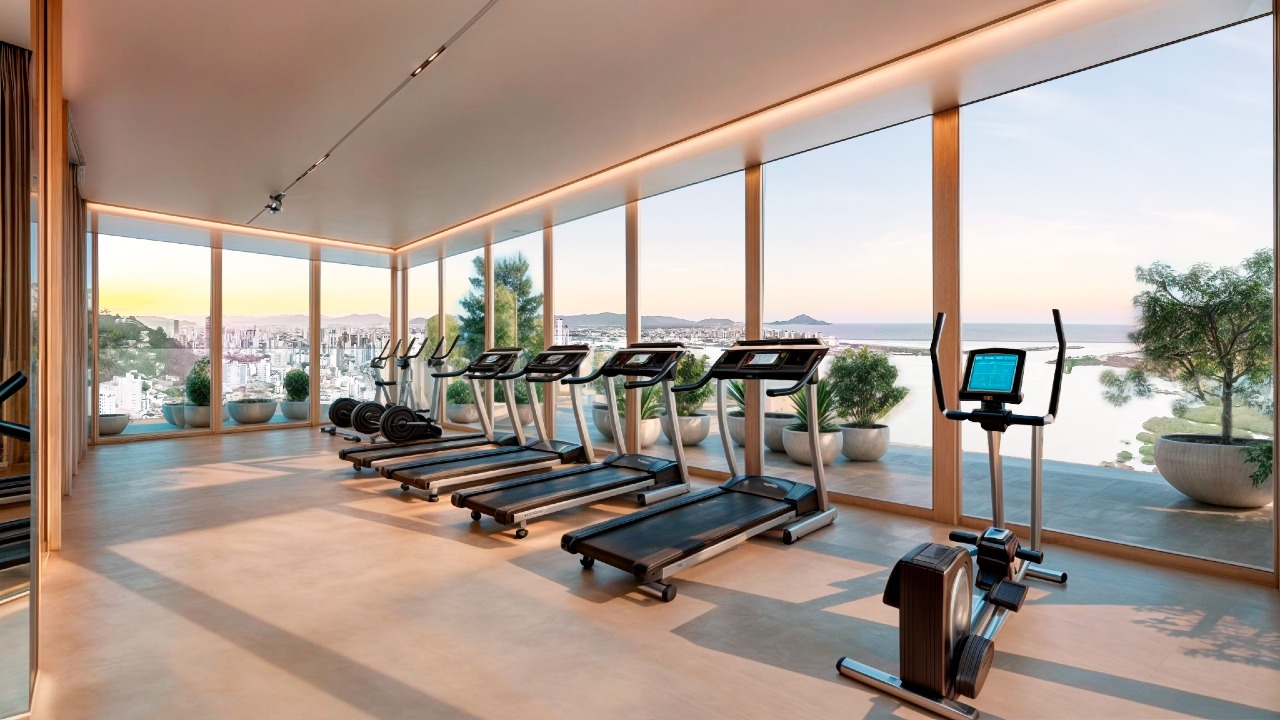 -Academia com vista panorâmica oferece uma experiência única de bem-estar.