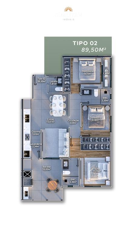 • Opções com 1 suíte + 2 quartos e lavabo - 89,50m² e 2 vagas