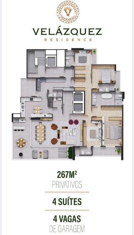 Com 267m² de área privativa, cada unidade do Velásquez combina sofisticação e conforto em cada detalhe:
