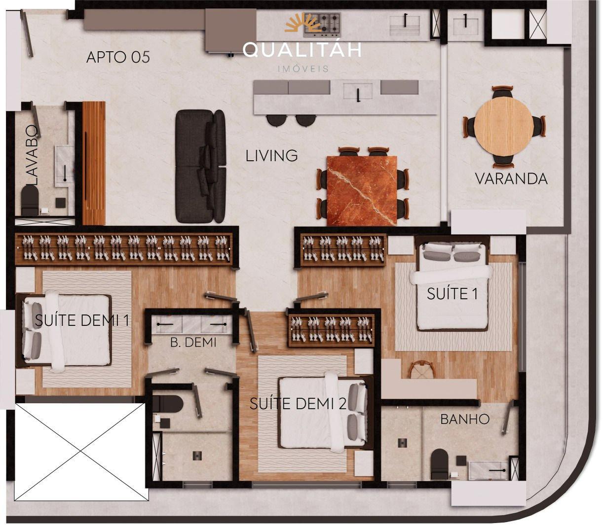 • 3 dormitórios, sendo 1 suíte e 2 demi-suítes